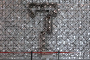 通过动态变形墙这件展品,我们可以看到在墙上会动态地出现一些字符或者图象,它所要展现的是在计算机控制下机械运动和图象与像素之间的关系。它利用程序控制技术和像素原理等通过计算机的控制带动数百个气缸做伸缩运动,从而在墙上形成特定规则的起伏变形。这些起伏变形作为像素组成特定的文字或者图案,这也是人类对图案的了解从平面走向立体。