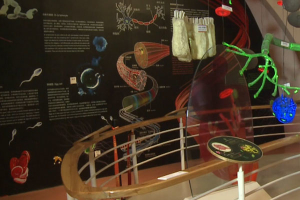 进入细胞世界这件展品呢主要是以实体模型和图文展示板的形式,向我们展示了人体中基本的细胞形态、结构和功能,以及细胞的有丝分裂和减数分裂,带您进入到细胞的世界,使您对人体细胞的种类、形态、作用和功能有一个初步的了解,从而认识到细胞世界的繁多和复杂。
