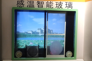感温智能玻璃可以通过温度的改变,来调节对红外线的感应度,在感温智能玻璃的小屋当中有两种场景,分别是冬季和夏季。观众可以通过操纵按纽来进行调节,在橱窗当中有一面感温智能玻璃,它通过红外线灯的照射之后会变成模糊的状态,这样可以把高温阻挡在室外使室内保持平稳的一个温度。