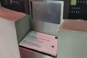 在酸雨实验室里面可以观看酸雨的产生过程及其影响。观众可以按动操作台上的上下页进行小书的翻页,同时正前方的大书页也会随之翻动,书页上的画面由建筑物和动植物构成