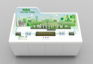 展示电压等级、传输线横截面与电量传输效率的关系,展现特高压技术应用及其在推动能源消费结构转变、促进绿色发展、应对气候变化中发挥的重要作用。