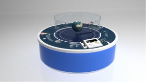 观众通过操作杆分别启动模型演示有无中继卫星工作的两种情况,采用红外激光束演示地球与月球正面或背面探测器的电磁波传输路径,为使光束直观可见,在传输路径上不断产生水雾。并通过观看图文版和触摸屏多媒体内容了解更多相关知识。