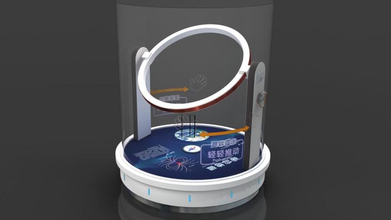 下面要介绍的这件展项,演示的就是导体的静电感应原理和电场对电荷的作用力。在保护罩内有左右两个分别带正负高压静电的定制球拍,按下按钮,展项通电后,悬吊在两个定制球拍之间的金属小球就开始不停的来回摆动,发出乒乒乓乓的响声。那么是什么导致小球在来回摆动并发出乒乓声呢?
