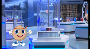 我们来看看展台里有一个金属线圈,线圈中间是个铁芯,铁芯上还套着一个铝环,现在圆环位于线圈的底部。我们要先通过显示屏界面上的操作提示【操作提示:点击按钮为线圈接入交流电】点击“通电”按钮,接通电源后,铝环将一下子就弹跳起来。当然你也可以通过显示屏接下来的界面提示【滑动滑快,调节电压大小】,根据画面中间的高、中、低三档电压范围手动滑动滑块调节电压后,按下“确认”按钮,来观察前方的铝环跳起的高度变化。