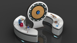我们都知道电和磁是不可分割的,它们始终交织在一起。就是电可以生磁,磁也可以生电。磁生电是英国科学家法拉第发现的。它的原理是放在变化磁通量中的导体,会产生电动势,这个电动势称为感应电动势。若将这个导体闭合成一个回路,那么感应电动势就会驱使电子流动,形成感应电流。这种现象叫电磁感应现象。而按压发电展项就是根据这个原理制成的,这个展品由磁铁、线圈和灯组成,当我们按压磁铁的时候,磁铁会在周边的线圈上切割磁感线从而产生电流,电流通过闭合电路传输到周边的灯上,从而将周边的LED灯点亮。