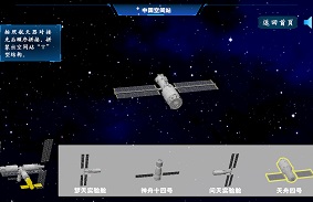 该系统支持自然化交互操作,呈现中国空间站完整形态的舱内外构造,您可在网页上能通过鼠标执行点击、放大缩小等操作来自行选择需要了解的舱段,观察空间站内各项设施的细节,以航天员的视角来了解空间站中的工作和生活。