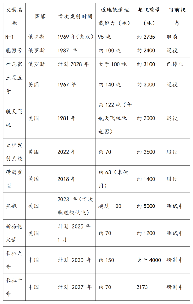 各国重型火箭发展现状