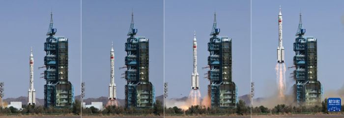 发射过程中的长征二号F遥十四运载火箭