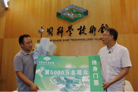 2018年8月29日,伴随着第5000万人次观众检票进入展厅,中国科技馆“馆长带你走进科技馆”活动正式拉开帷幕,同时超过6000万观众通过网络直播跟随中国科技馆副馆长廖红的带领一起走进中国科技馆。参观活动结束后,中国科协党组成员、中国科技馆馆长殷皓向幸运观众赠送了终身(免费)门票和文创礼品。