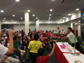 当日晚间,中国科技馆的科技辅导员为当地100多名小学生及家长献上了精彩纷呈的科学表演,现场再现王亚平在天宫进行的陀螺运动实验,并利用多种材料制作火箭模型。通过科学性、知识性、趣味性相结合的互动教育形式,带领马来西亚青少年了解科学、感受科学。现场学生们踊跃参与,反应热烈。