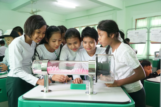 图2:缅甸内比都第六中学的同学们正在体验中国流动科技馆展品