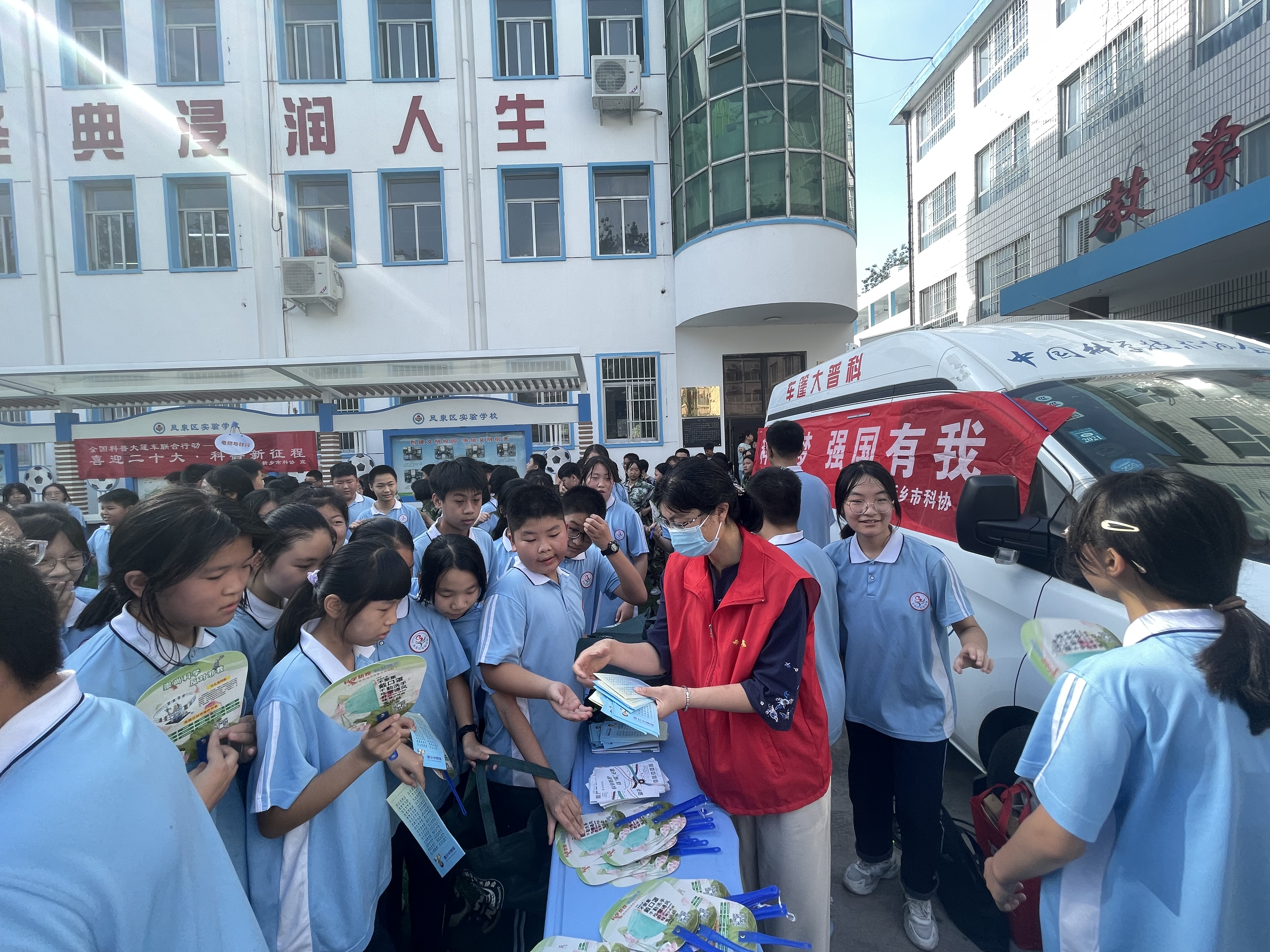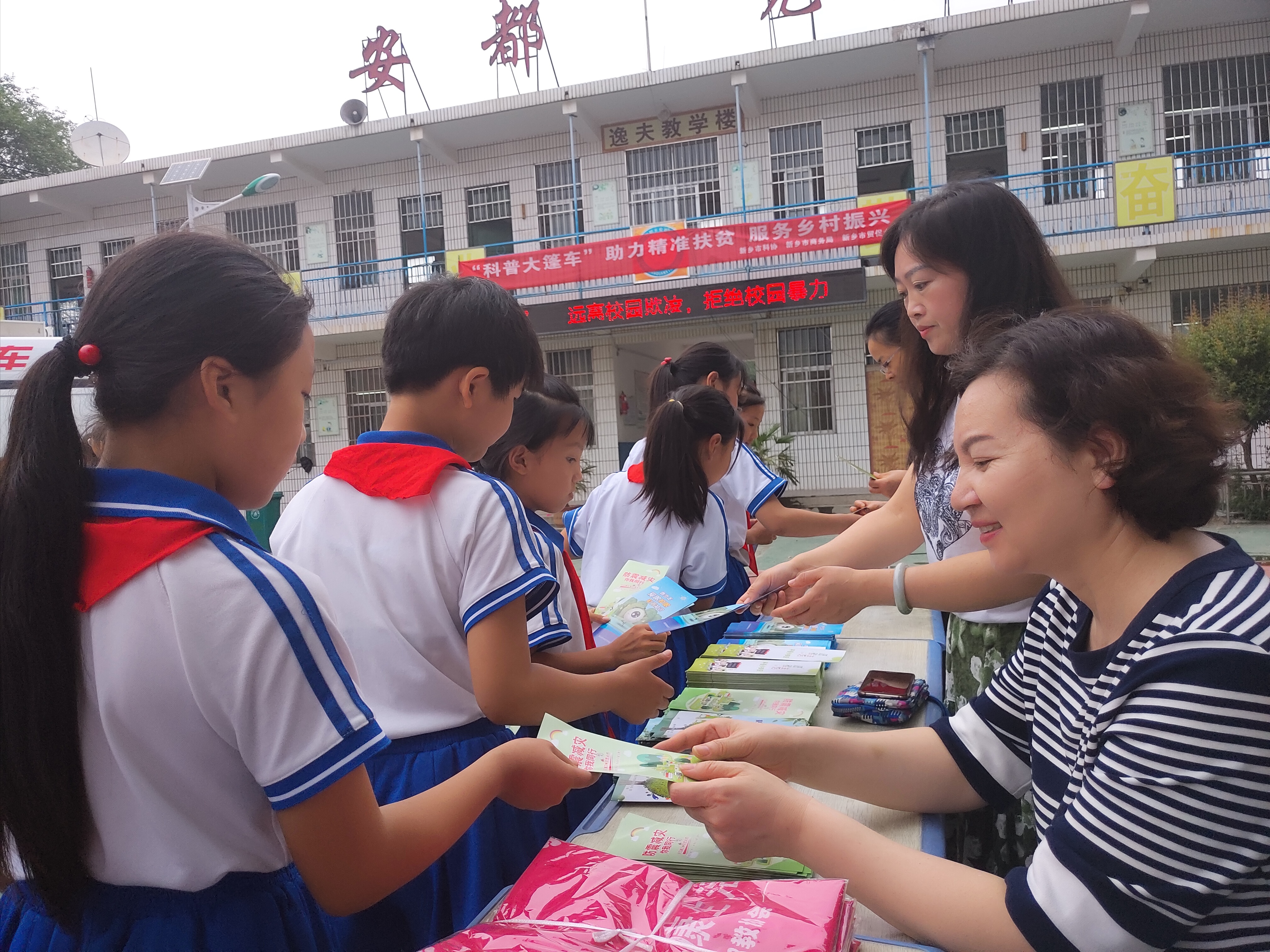 科普大篷车五进活动-12020年6月9日市科协领导在卫辉安都完小发放宣传手册。 -