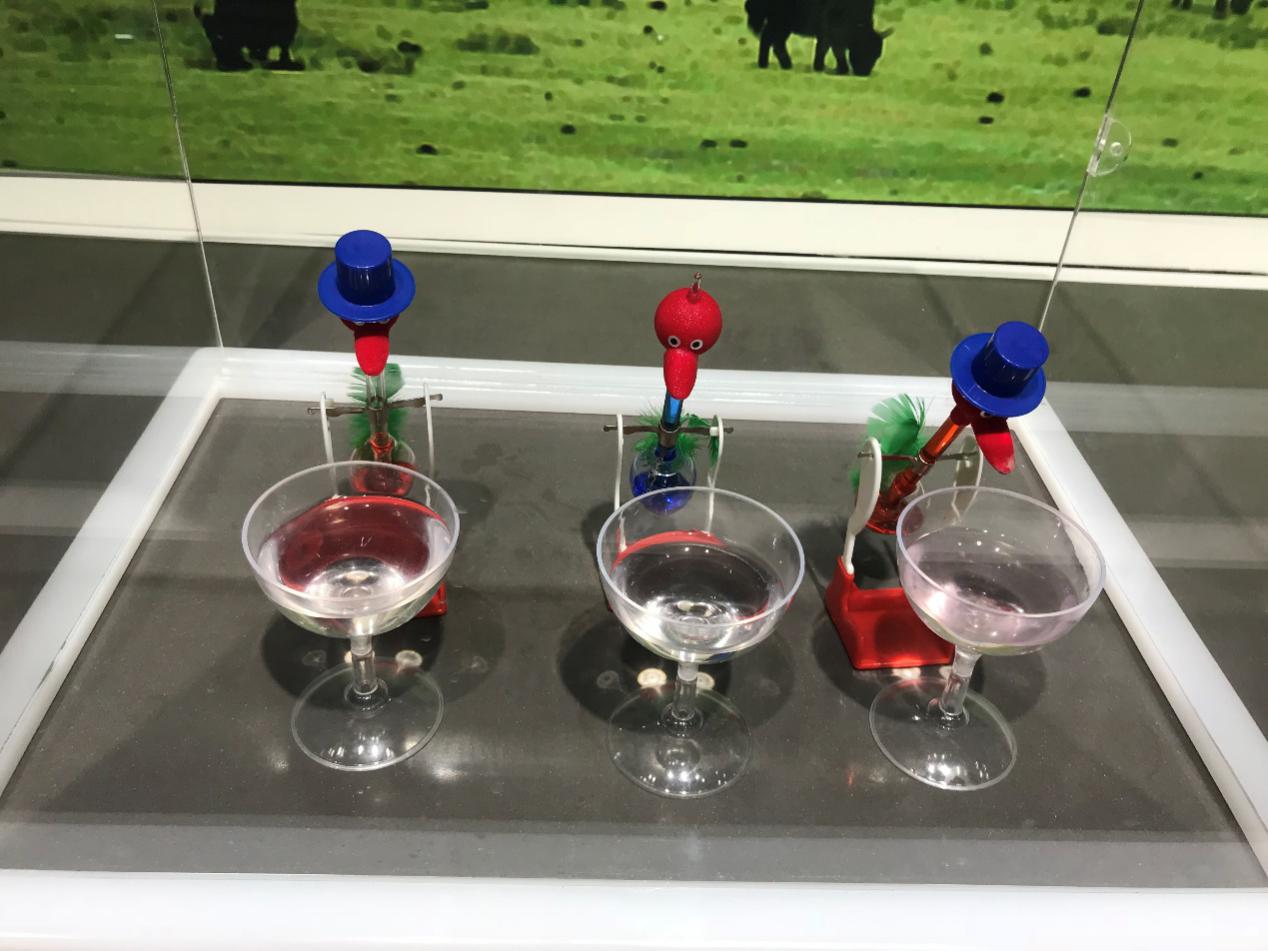 青藏铁路的关键技术之三的展示,可谓是赚足人的眼球,首先展览将黑黑粗粗的热棒实物摆放到了现场,其庞大的体积和冷峻的外形吸引了众多目光,而它的背后则是浓浓的科技感。热棒是全封闭的管状结构,被埋在路基两侧。热棒内部的液氨温度较低,能够吸收路基中多余的热量。液氨吸热后会汽化,由于体积膨胀会向热棒顶端移动,从露出地面的顶端进行散热。由于空气温度较低,氨将热量散至空气中后,重新变为液态回流至管底。通过汽化液化过程的不断循环,将热量散至空气中,保护了青藏高原冻土层的稳定。这里不光热棒实物展示,为了照顾不同观众的需求,针对热棒一项技术,我们还为小朋友们准备了饮水鸟玩具,通过它小朋友们就可以更加直观地感受到其中的科学原理。为了做到“老少通吃”我们也是煞费苦心。