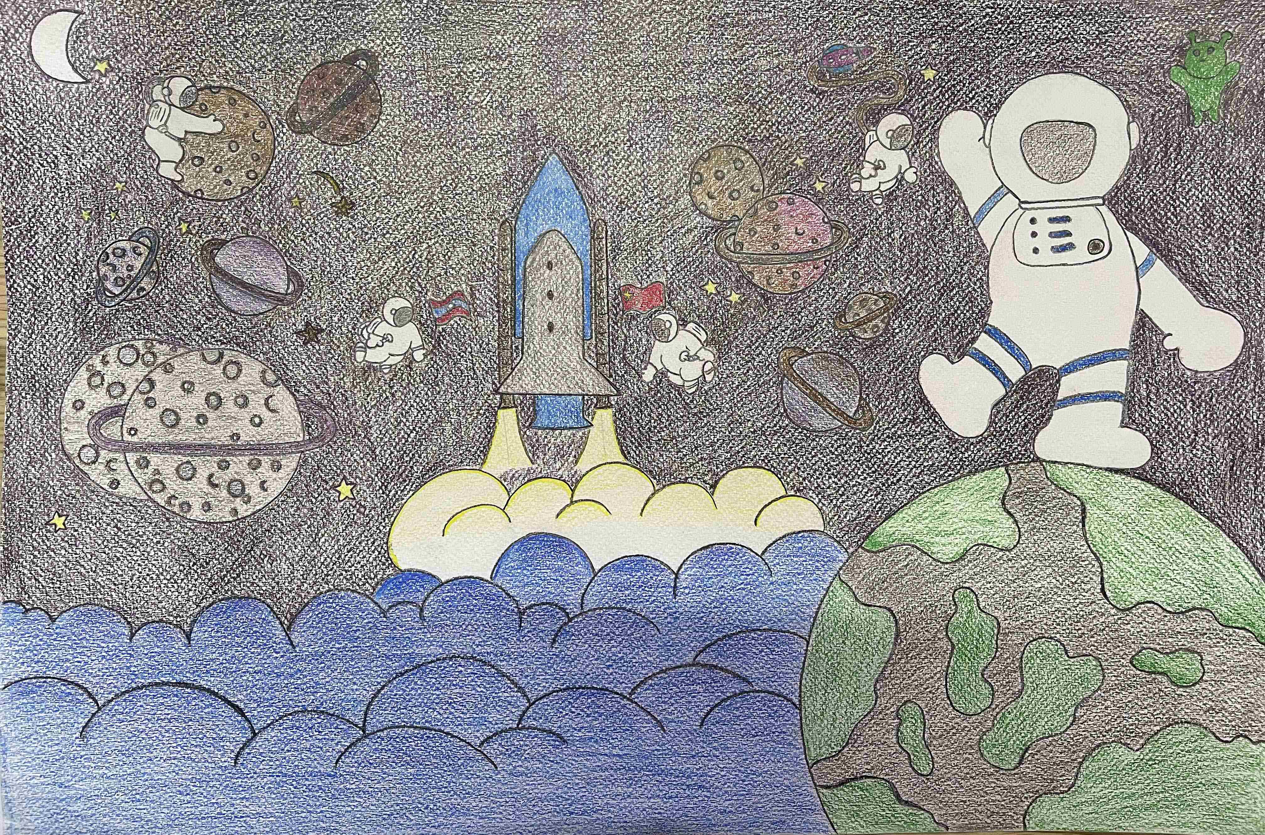 航天日绘画作品《星海邀约》,老挝美穆达·彭马文赛