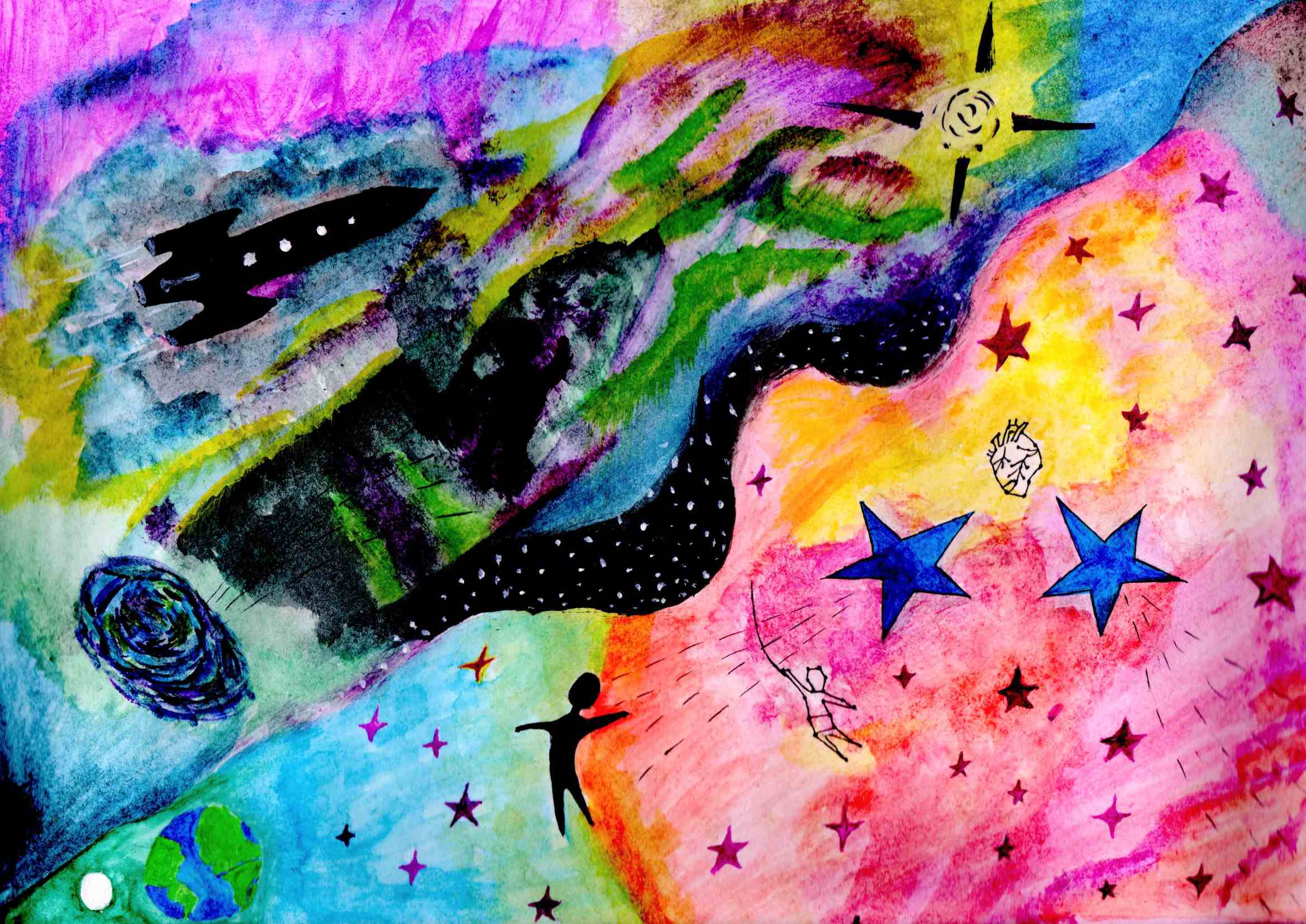 航天日绘画作品《五彩太空》,蒙古国达·阿奴达日