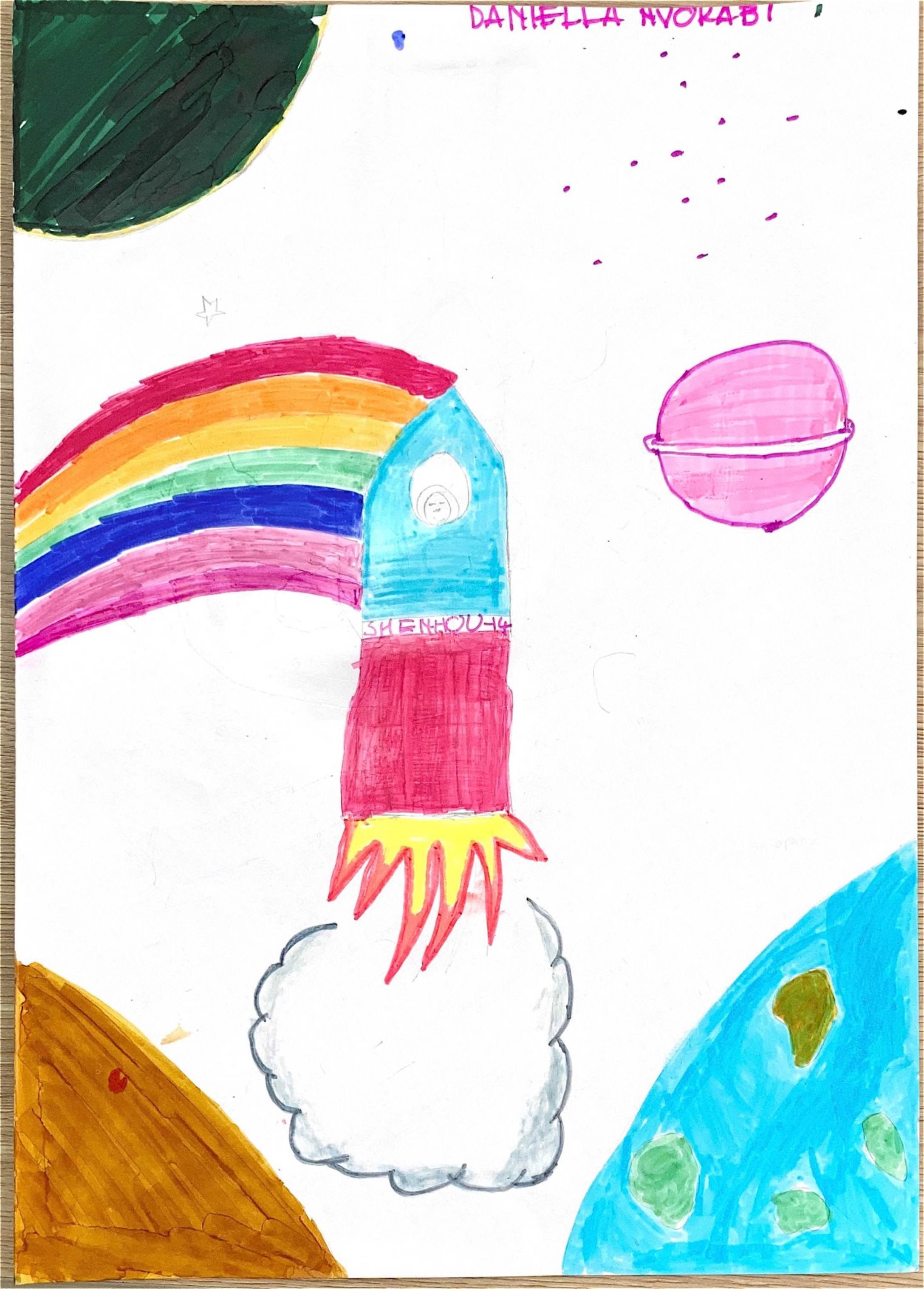 航天日绘画作品《探索彩虹般绚烂的太空》,肯尼亚丹妮拉·恩沃卡比(Daniella Nvokabi)