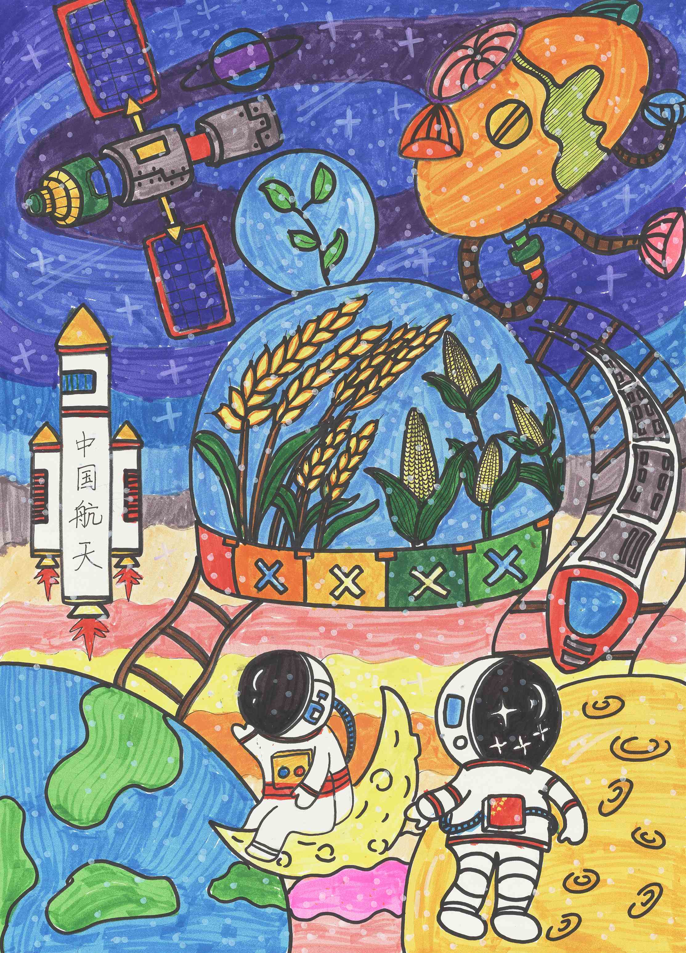 《遨游天际 科技兴农》 张家睿 9岁