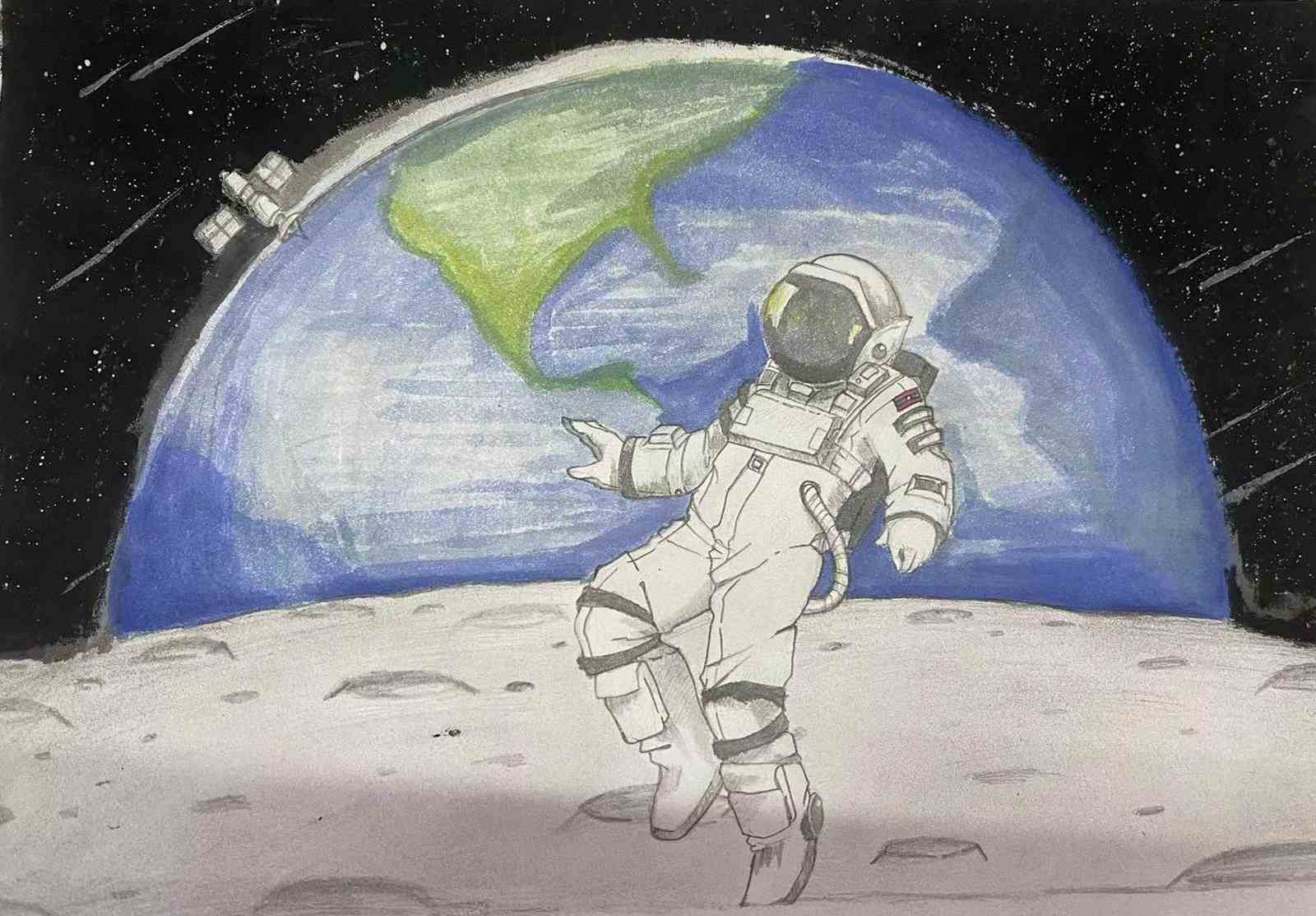航天日绘画作品《旅程无极限》,老挝季迪鹏·吴敦萨