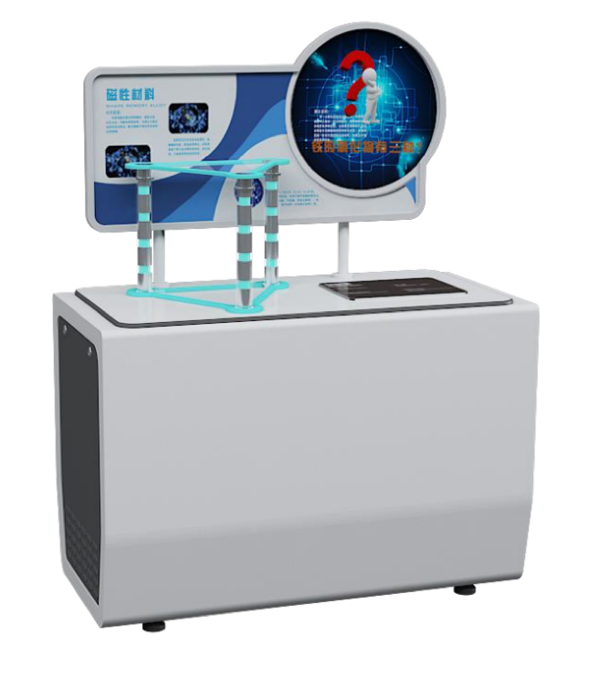 本展项由图文板、展台、铜环,以及内部分别装有钕铁硼、普通磁铁、非磁性材料的三个立柱组成,共同构成了一个磁阻尼演示,三个立柱上分别套有相同的铜环。观众将任意两个铜环提到立柱顶端,并同时释放,观看哪个下落的速度快。重复多次试验,通过不同磁性材料的操作体验,体会磁性材料与铜环下落速度的关系,了解磁性材料的磁性强弱及其内在规律。
