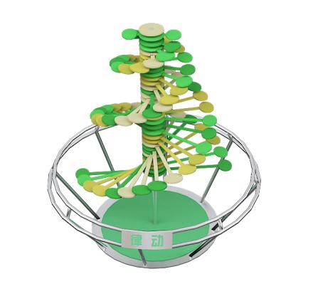 本展品为艺术装置,该雕塑如同一棵螺旋上升的树,每一个枝条与它上下的枝条有同样的间距,并在水平方向上相对于上下枝条转过固定的角度,这种规律性的迭代变化使众多枝条整体呈现出规则又富有动态的视觉效果。