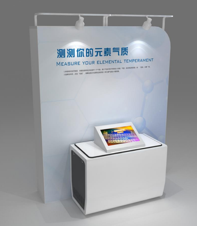 本展项将几种典型元素性质以拟人化的性格、气质、特征等词语来表示,展示页面设计为心理测试答题类。一共五道题选择题,每答完一题,页面自动进入下一题。全部答完后,系统会根据每题的答案,自动匹配一种元素。该展品通过提供与体验者性格、气质、体态特征等相似的元素信息,体现出元素周期表中的各元素具有的不同性质,增加展品趣味性。