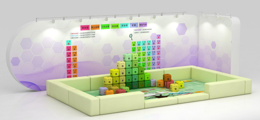 本展品通过立体元素积木进行亲子互动,在轻松活泼的氛围中,为观众特别是为低领儿童提供参与机会,使其可以在家长的帮助下拼搭积木,进而对元素周期表有初步了解和认识。背板上展示简易的元素周期表,家长需要阅读学习元素周期表,并指导孩子完成立体元素周期表积木拼搭。