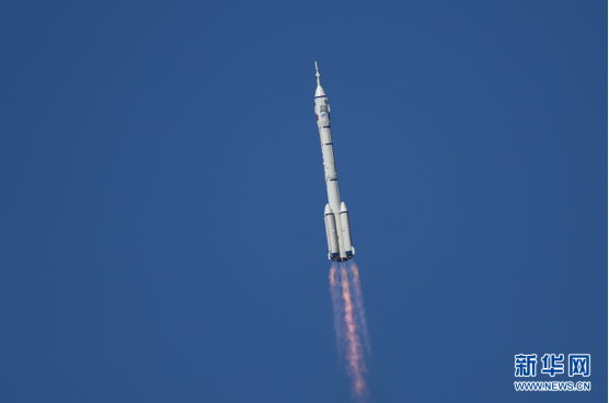 (2021年6月17日,搭载着神舟十二号载人飞船的长征二号F遥十二运载火箭在酒泉卫星发射中心点火升空。新华社记者 连振 摄)