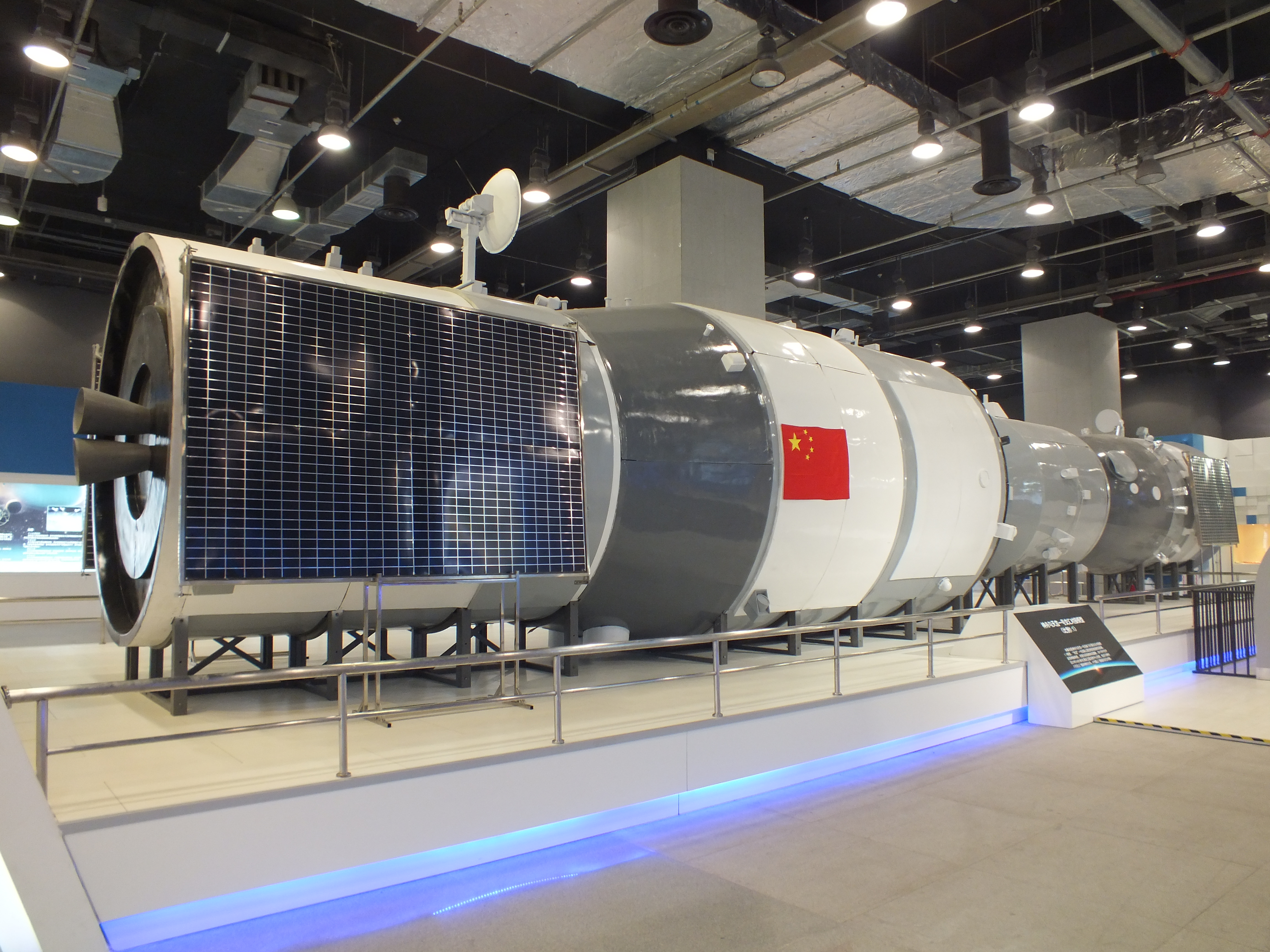 图注:“天宫”一号空间站与“神舟”飞船对接模型(摄影/马之恒)