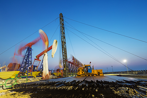 图注:在油田日夜工作的抽油机是重要的石油开采设备