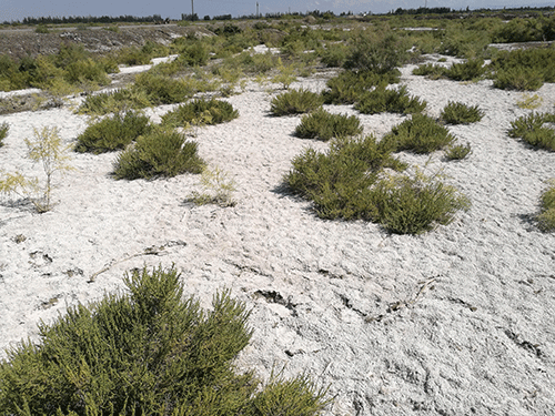 土壤盐碱化导致土壤有机质含量极低,结构不良,土壤生物多样性减少,直接影响植物生长发育和作物生产(供图/王飞)
