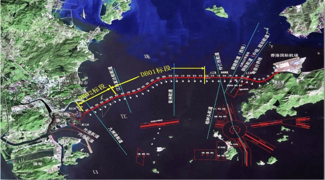 因此,为了同时满足珠江航道船行远期要求及机场航空限高要求,大桥工程师们在主航道修建海底隧道,让隧道深埋在海床里面。