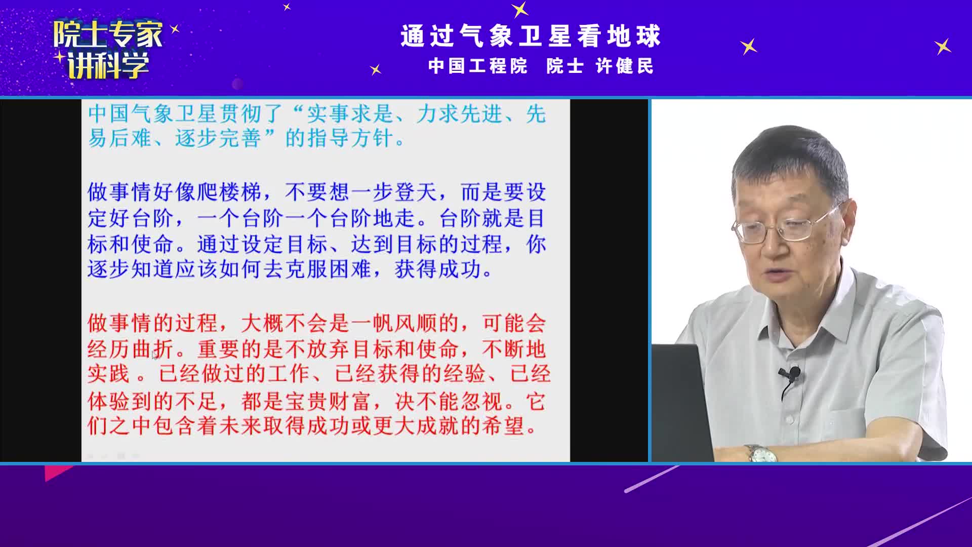 1.气象卫星简介:气象卫星发展历史和现状;2.气象卫星提供的信息:台风、冷空气、雷雨天气、沙尘暴、火山爆发、森林火灾、大气污染、水污染等。气象卫星如何实现对地球的观测:举例介绍气象卫星云图如何形成(静止气象卫星图像成图和定位技术)、气象卫星观测数据的辐射强度如何标定(基于月球辐射校正的定标技术)、气象卫星观测数据的光谱频率如何标定(微波探测仪器在轨参数变分反演模型)。