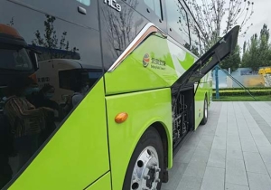 12米长的车身、绿色祥云涂装、顶部有空调机……乍一看去,氢燃料客车似乎平平无奇,和想象当中的“黑科技”不太一样。