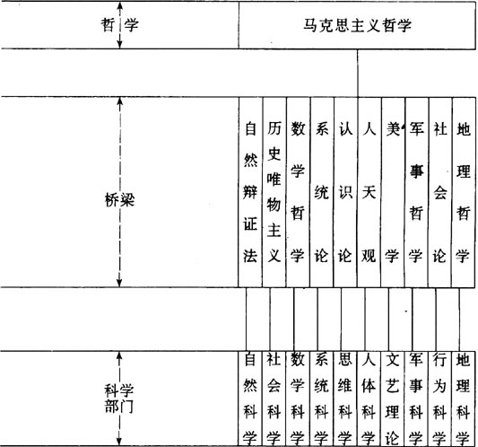 钱学森将当代科学技术发展状况,归纳为十个紧密相联的科学技术部门。这十大科学技术部门的划分方法,正是钱学森运用马克思主义哲学,特别是系统论对科学分类方法的又一创新。他提出,这十大科学技术部门的划分不在于各学科研究对象之不同,而在于它研究问题或看问题的角度不同;它们的研究对象都是统一的,即整个客观世界(包括自然的和人造的),人也是客观世界的一部分。自然科学是从物质在时空中的运动、物质运动的不同层次、不同层次的相互关系这个角度研究整个客观世界。社会科学是从人类社会的发展运动,即从人类社会内部的运动以及客观世界对人类社会发展运动的影响这个角度研究整个客观世界。数学科学是从质和量的对立统一、质和量互变的角度去研究整个客观世界。其他如文艺理论是文学艺术的理论,而文学艺术也是面对整个客观世界的。军事科学的研究已不限于战争,而是从矛盾斗争的角度去研究整个客观世界,包括“科技战”、“智力战”、“商战”等。行为科学是从个人与社会的相互作用这个角度去研究整个客观世界的,现在人的活动不但要考虑整个地球,而且已经深入到地下,上升到天上以至太阳系……所以人类社会也涉及整个客观世界。地理科学是研究人类社会赖以生存的环境,它是从地球与人类社会、与宇宙天体的相互联系、相互作用中研究整个客观世界的。