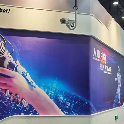 大家注意,体验时请放慢动作,使机器人能够跟上你的节奏。