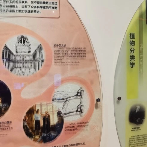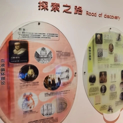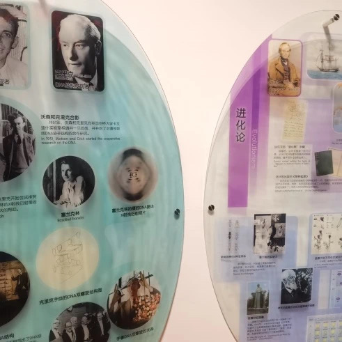 本展项以图文展板的形式介绍了 6 位对生命科学发展史具有杰出贡献的科学家。从血液循环系统的发现、生物命名系统的建立、细胞学说、自然选择理论、遗传定律、DNA 双螺旋结构这六方面向观众呈现生命科学的发展历程。展项力图引导观众对生命展区相关展品知识做一个总结性的回忆。同时使观众明白,生命科学发展历程是由无数具有科学探索精神的先驱所创造的,进而思索生命科学的意义和科学探索的精神。