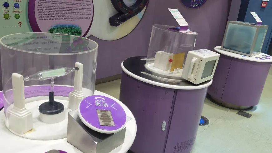 该展项由四部分组成,分别是:“汤姆生阴极射线实验演示”、“卢瑟福α粒子散射实验演示”、“原子是什么”和“半立体加速器模型演示”,向您展示了微观粒子结构探索中的几个实验: