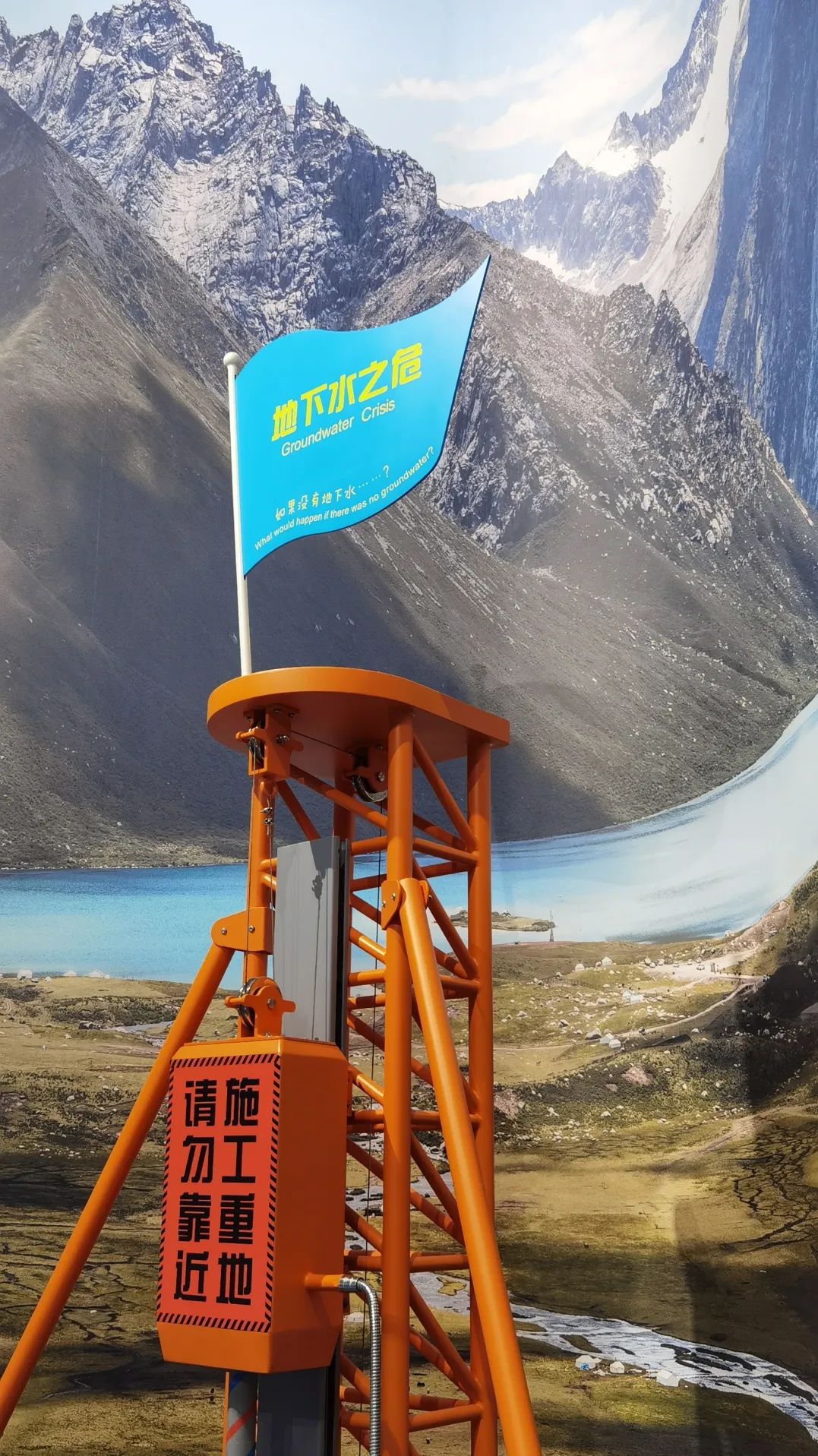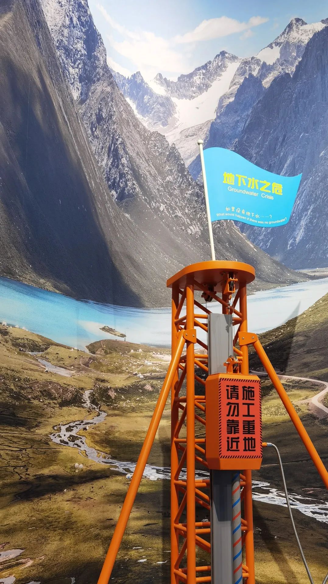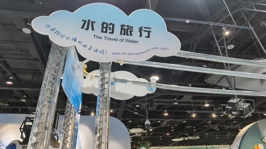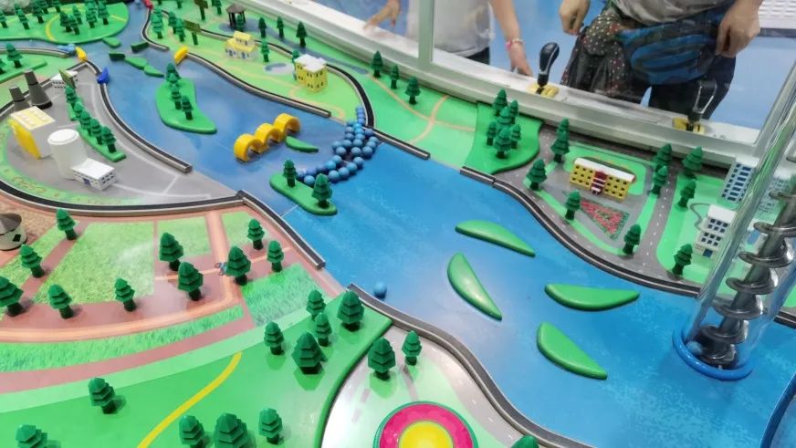 水循环实现了地球系统水量、能量和地球生物化学物质的迁移和转换、构成了全球性的连续有序的动态大系统。水循环联系着海陆两大系统,塑造着地表形态,不断提供再生的淡水资源。因此,水循环对于地球表层结构的演变和人类可持续发展都意义重大。展品通过机械装置运输蓝色小球(代表水)来模拟水循环的过程,观众可以操作互动机构改变小球滚动的方向,让小球从山顶流下、汇集成江河,通过截取可使小球滚入农业区、工业区、生活区、生态区,也可将水进行分流、导流,操作防洪堤坝,防止小球滚入城市,最后小球汇入代表海洋的收纳槽,通过提升机构模拟蒸发,聚集成云,再降至地表形成河流。使观众了解自然界宏观水循环过程及人类对水资源的需求和利用,形成科学利用水资源、保护水资源意识,实现人类与生态环境的和谐发展。