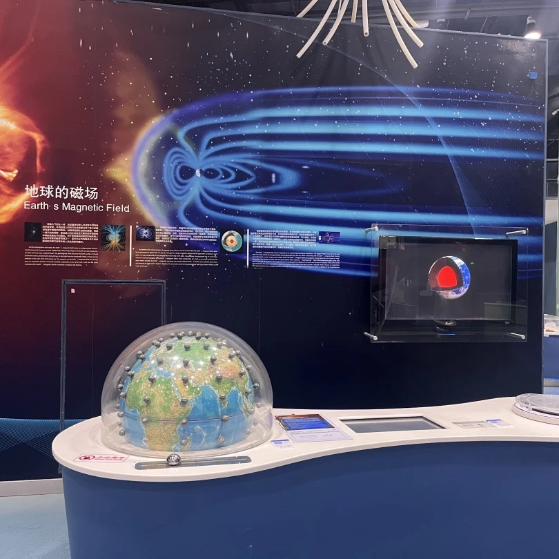 我们地球磁场的存在对于人类来说非常的重要,因为有了它,我们能避免太阳所带来的高能粒子流对地面的直接冲击,从而保护我们而这些带电粒子流,会到地球的南北两极形成炫丽的极光。但是我们地球的磁场并不是固定不变的,它会发生反转。那通过操作这个操作杆我们就可以知道地球磁场在什么时间发生过反转,而同样我们的地理的南北极和地磁的南北极也存在一定的偏角,我们称之为磁偏角。每个城市的磁偏角都不尽相同。