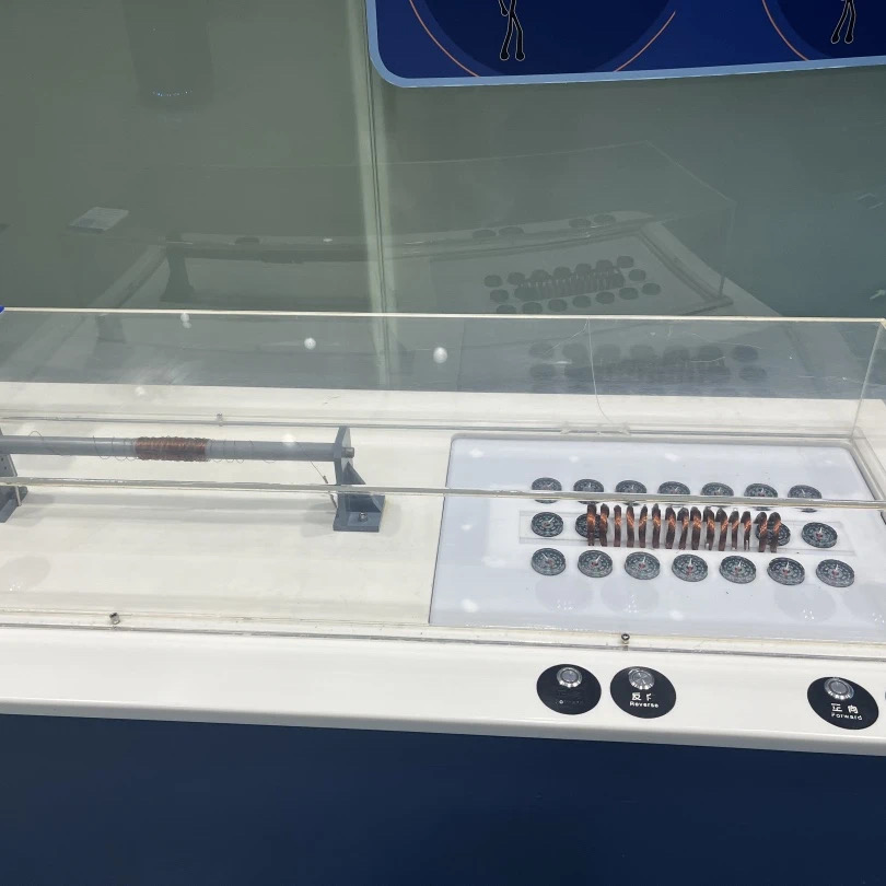 最后一个展项向我们展示出了线圈在磁场当中运动的时候电流的运动情况。