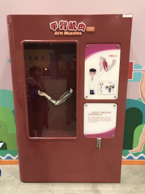 小朋友们,现在请你们水平伸出左臂,将右手放在左上臂上,然后慢慢抬起前臂,你是不是感到右手下面的部位鼓起一块肌肉呢?对了,正是由于这块肌肉的收缩,才使我们完成了屈肘的动作。