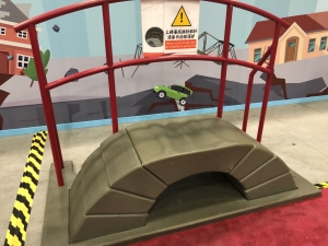 去过颐和园、北海公园的小朋友们有没有看到过拱桥?一般坐落在小河上面,夏天的时候会有很多人停住脚步看金鱼。拱桥是我国最常见的一种桥梁,它式样很多,数量很大,为各种桥型之冠,特别是公路桥梁,据不完全统计,我国的公路桥中7%为拱桥。它造型优美,曲线圆润,富有动态感。我国最有名的拱桥是赵州桥,在我们的华夏之光展厅里就有它的模型,有兴趣的小朋友可以去观看。 在大家齐动手展区就给小朋友们提供了一块搭建小拱桥的场所,你们可以试着自己动手搭建一个拱桥。在这里有七块积木,每一块积木上面都有两个凹槽和凸形结构,用于每一块搭桥积木的联结和固定,避免搭建完成后的侧向倒塌。小朋友们一定要先观察,然后找出关键的那两块地基,建房子和建桥梁时地基起到了关键的作用,所以这两块很重要哦!然后小朋友们根据每块积木的不同点依次把它们搭建起来。当你们搭建成功后,可以从自己搭建的桥梁上走过。在这里还是提醒你们注意安全,一定要扶好边上的护栏呀!通过小朋友们的动手搭建,你们会初步了解拱桥的基本结构,同时锻炼观察能力、思维能力和动手能力。
