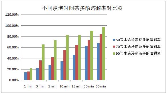 3.龙井茶使用中水温(70℃左右)通过两次短时(15min)浸泡的办法,也可以使茶多酚的溶解率达到90%以上。