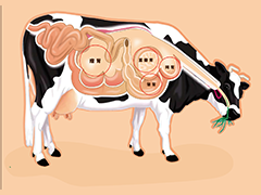 牛吃东西很快,吃掉的大量草茎等食物先进入瘤胃,休息时将咽下去的食物吐回口中细细咀嚼后再吞入胃内,前3个胃内生活着大量的微生物,可以帮助牛分解食物。牛作为食草动物,随时要警惕食肉动物的猎杀,反刍功能保证了牛在逃避猎食者的同时还能充分获取食物养分。