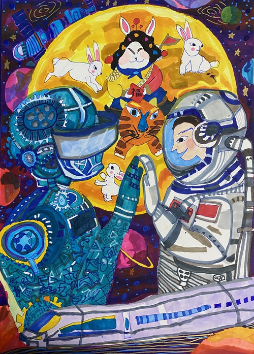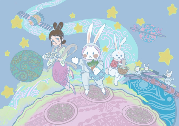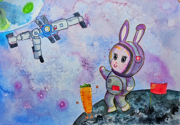 绘画作品:蟾宫玉兔往来自由