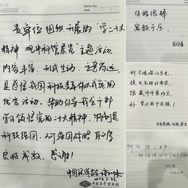 作为学习宣传贯彻党的二十大精神的重要举措和学习贯彻习近平新时代中国特色社会主义思想主题教育的重要内容,中国科技馆依托展览展品,以“主题参观路线+主题图文展览+主题教育活动”的模式,推出“学二十大精神 观中科馆展览”主题活动,为党政军群等各类党组织及公众提供多主题、模块化、菜单式的教育实践活动。2023年2月22日活动正式启动,截至4月28日,累计服务来自102家单位的党员干部群众达3535人次,同时覆盖全部到馆参观公众。人民网、光明网、中国新闻网、北京日报、北京青年报等媒体对活动进行了报道。