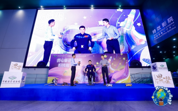 坚持立德树人,强化政治引领,深耕细作思政教育。活动现场,中国载人航天工程副总设计师杨利伟、航天员叶光富为现场青少年讲授“科技馆里的思政课”,分享航天励志故事,激励青少年胸怀理想、志存高远,弘扬载人航天精神、科学家精神。航天员叶光富带领青年学生再现“天宫课堂”,重温“太空‘冰雪’实验”“太空转身”“水油分离”等经典实验,深入剖析天地对比实验差异,分享太空授课亲身感受,并与现场学生进行交流互动。