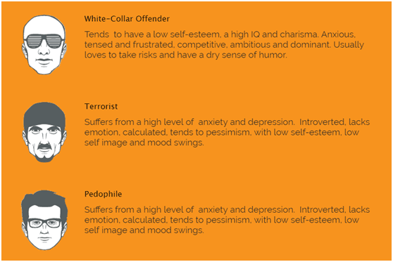 图注:FACEPTION分类中的白领罪犯、恐怖分子、恋童癖者(图片来源:FACEPTION网站)