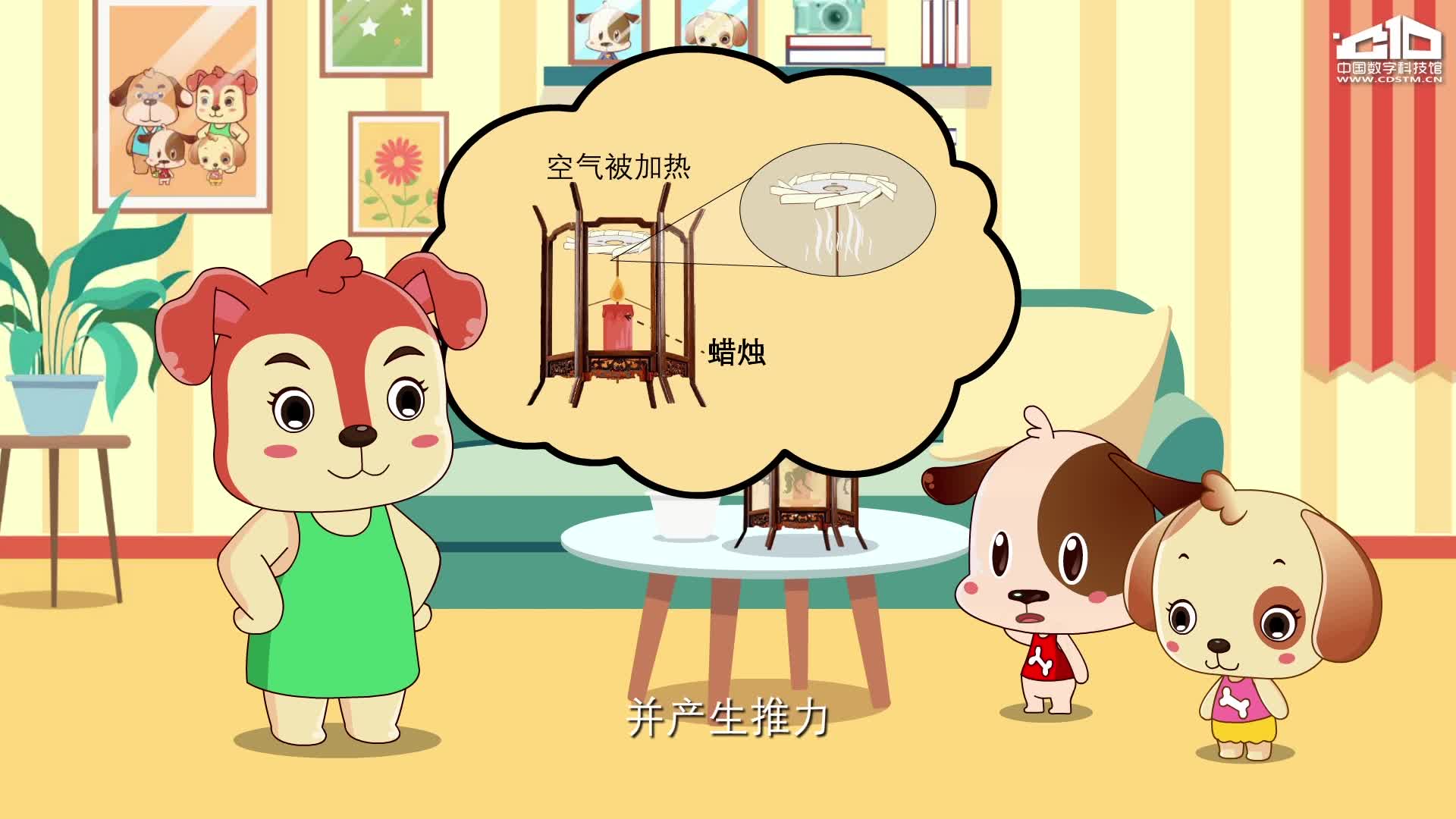 通过开开的手工作业走马灯,讲述热对流现象出现时,热量总是从温度较高处传到温度较低处,从而引起流体各部分之间发生相对位移。
