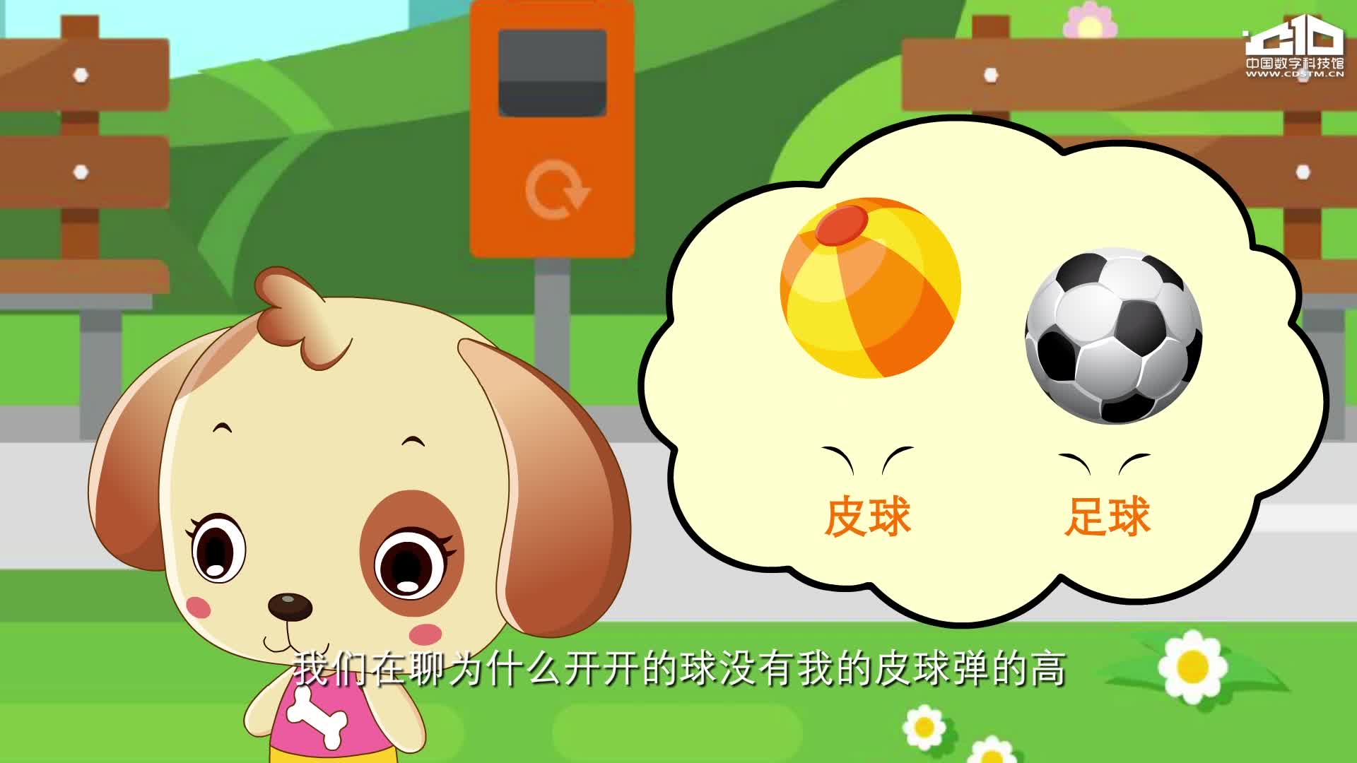 通过开开心心对足球和皮球的对比,讲述物体受力变形、恢复形状、产生弹力等相关知识。